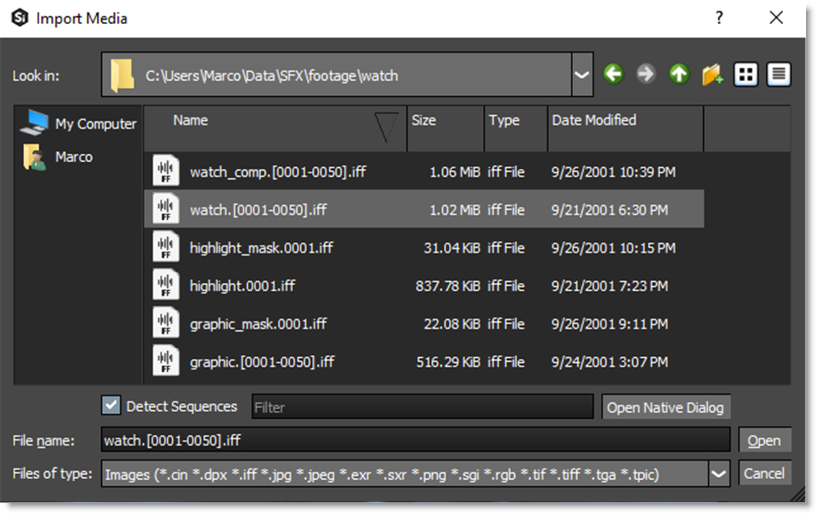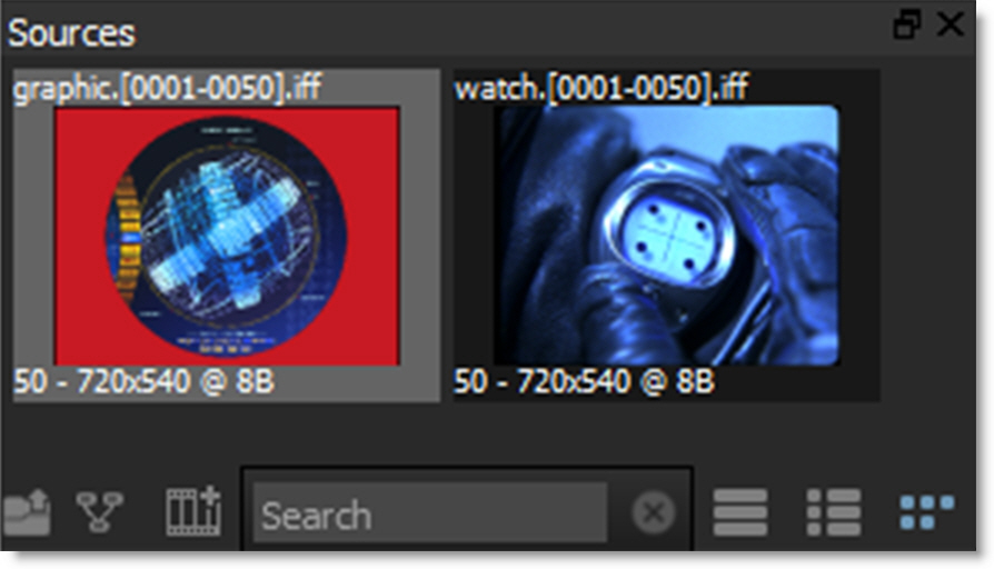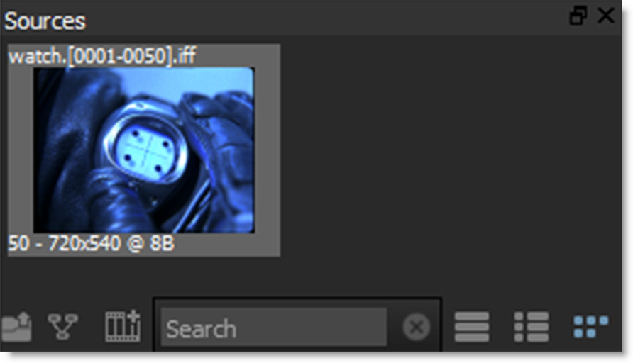 Before you can start using Silhouette, media (footage) has to be imported. The Silhouette plug-in automatically imports the media (footage) selected in the host application and appears in the Sources window. Although the plug-in is limited to three sources on the host side, you can import an unlimited amount of media directly in Silhouette.