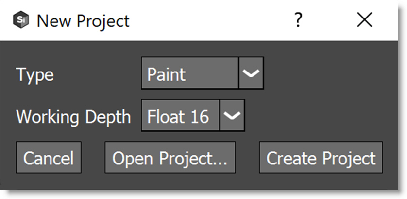 2 When prompted, select a project Type and Working Depth. Normally, it is best to practice to match the host application’s bit depth.
