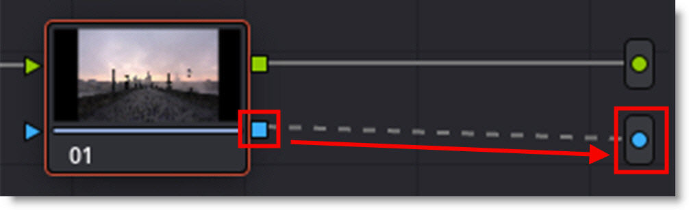 • Resolve: In the Color tab, right-click the source node Silhouette was applied to and select Add OFX Input, drag and drop the optional source from the Media Pool to the Color tab, and connect the green output port of the optional source to the green input of the source node.