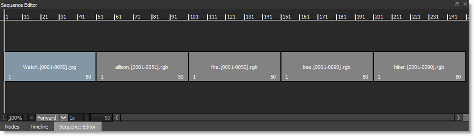 Silhouette can perform editing tasks such as cutting, joining, moving, copying, replacing, trimming, retiming and repeating clips in the Sequence Editor. The sequence can then be used as an element in the Trees window.