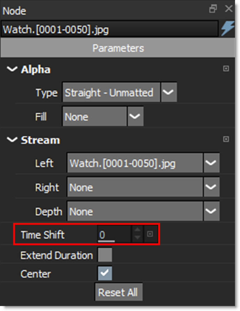3 If you want to center the image inside Silhouette, select the source thumbnail in Silhouette’s Trees window and disable Center in the Node window. This defers the centering to the Nuke setting.