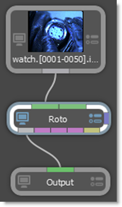 • Roto: Automatically adds Roto and Output nodes to the source and selects the Streamlined workspace. Back in the host, the Render parameter is automatically set to Roto.