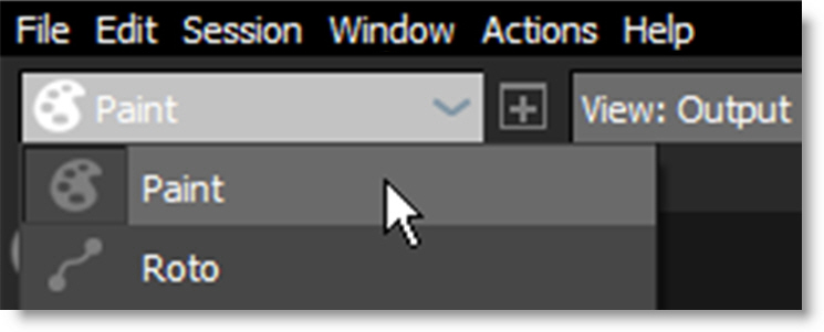 • Paint: Automatically adds Roto, Paint and Output nodes to the source, connects the Roto > Data output to the Paint > Data input and selects the Streamlined workspace. Back in the host, the Render parameter is automatically set to Paint.