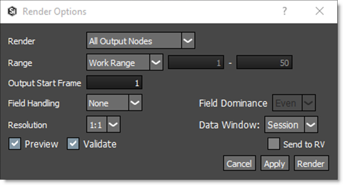 The Render Options window opens.