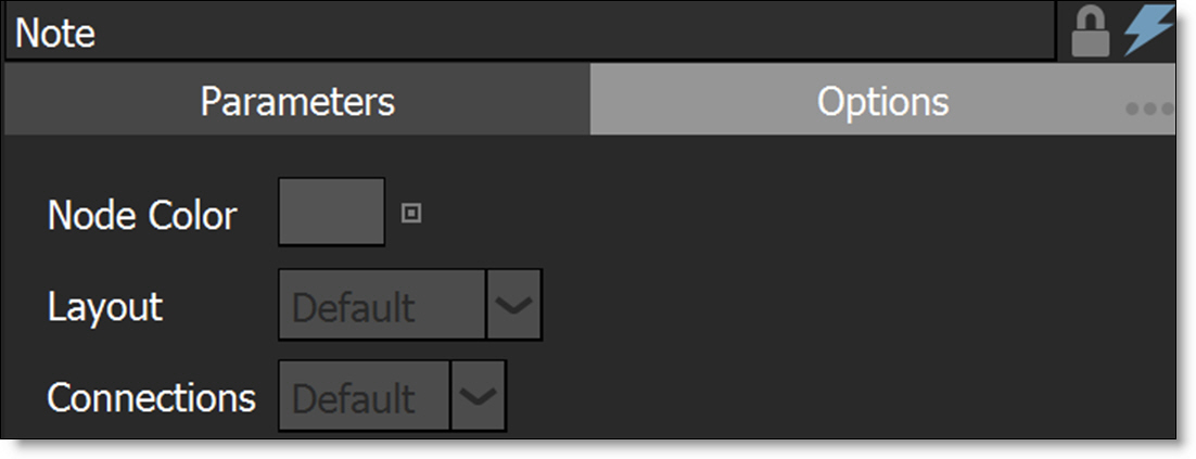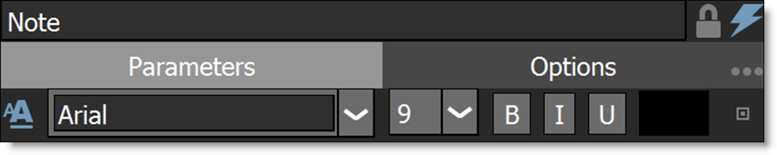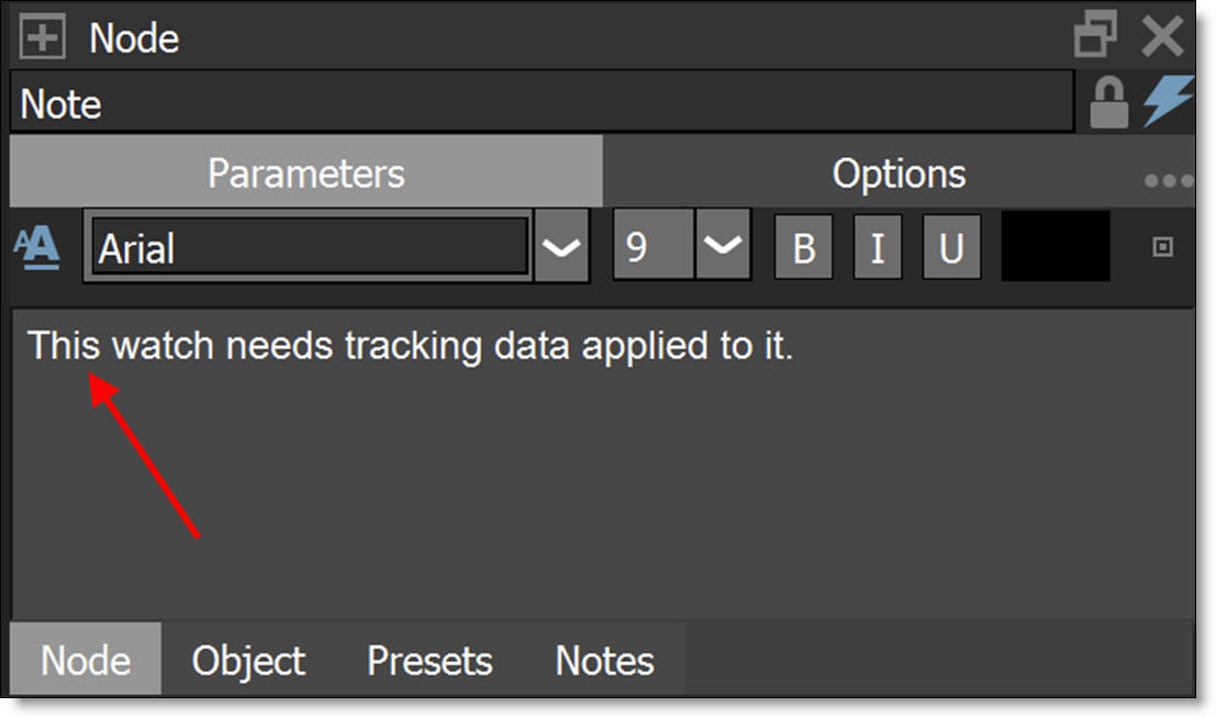 When the Note node is added to the Trees window, the cursor appears in the Note > Parameters text editor where you can type your note.