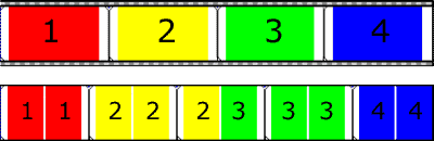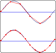 In the following example, each red dot represents one sample. Because the lower waveform is represented by twice as many samples as the top waveform, the samples are able to better approximate the original waveform.