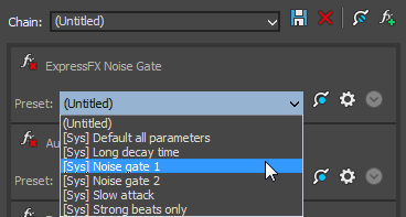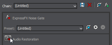 The Plug-In chain window works somewhat different than the application of effects or processes from the Process, Effects or FX Plug-Ins menu and even the Plug-In-Chain used in the Apply Plug-In Chain... option in this menu: