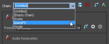 The Plug-In Chain allows you to link up to 32 DirectX and VST plug-ins into a single processing chain. All of the plug-ins in the chain can be previewed simultaneously in real time (as long as your computer can process the preview information quickly enough).