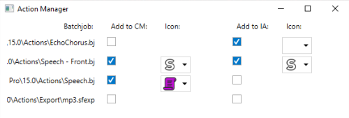 This button from the User Entries section of the Instant Actions window opens the Action Manager, where you can set for each batch job whether it is available in the Instant Actions window and/or in the context menu.