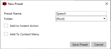 Give your preset a descriptive name and optionally choose a folder (see below) where the preset should be stored.