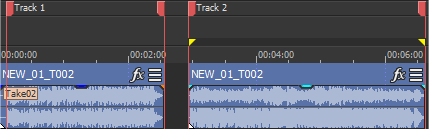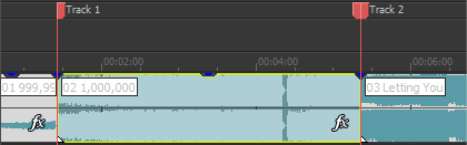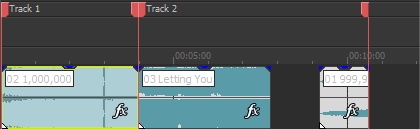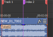 When you add CD tracks from the Project Media window, tracks are inserted starting at the cursor position, and the necessary silence is added between tracks. Each track is marked on the CD layout bar and is assigned a name based on the media file name.