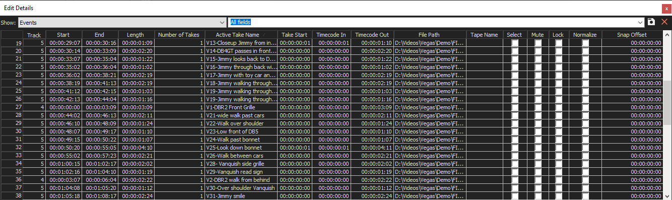 Click the box in the top-left corner of the Edit Details window to select all rows in the list, and press Ctrl+C to copy them to the clipboard. You can then paste the list into a document to create a PQ sheet for a CD replicator.