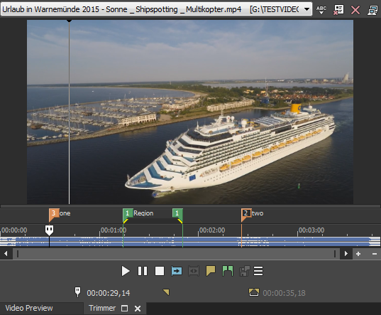 Media markers/regions visible in Trimmer window