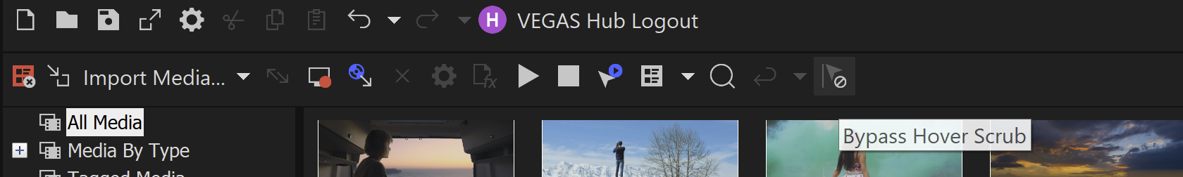 The Bypass Hover Scrub feature enables you to bypass the default hover scrub behavior in the Project Media window. With hover scrub bypassed, you can move your mouse across the thumbnail without scrubbing through the file and thus seeing the thumbnail change.