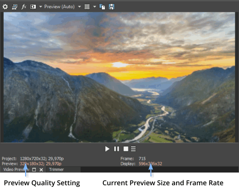 This setting is used for previewing only and has no effect on the final rendered video. Decreasing the preview resolution can allow the Vegas Pro Video Preview window to display a higher frame rate, especially for complex projects that contain overlays, transitions, and effects.