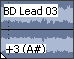 If Active Take Information is selected from the View menu, the event's pitch shift is displayed in the bottom-left corner of the event. If the media has a known root note, the new root is displayed in parentheses.