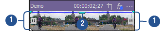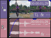 The handle in the top center of a video event controls the overall opacity of that event and, for an audio event, the overall volume of that event. 2.