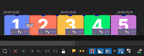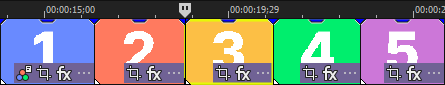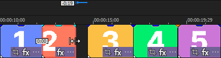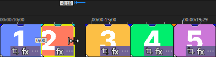The contents of the timeline are rippled after the edit according to the option you choose. In the following example, the post-edit ripple has closed the space between the second and third events.