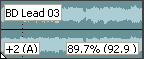 Stretched audio events will display a percentage in the lower-right corner of the event to indicate the stretched playback rate. If the media has a known tempo, the effective playback tempo (after stretching) is listed in parentheses after the stretch amount.