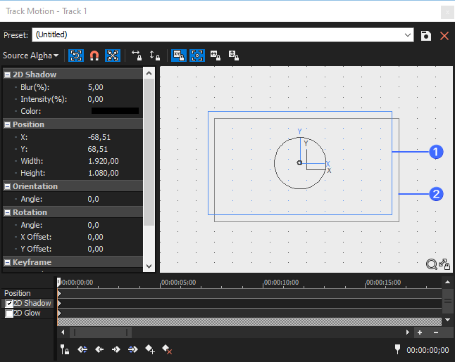 Adjust your Position, 2D Shadow, or 2D Glow settings as desired to create a keyframe.
