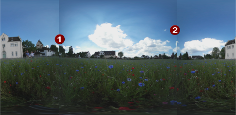 Adjust the Field of view slider, until the picture merges seamlessly at the edges (1).