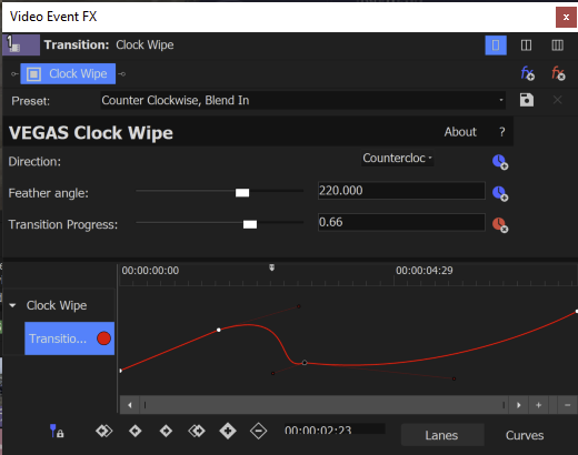 In the Video Event FX window, click the Transition Progress button. This opens the keyframe timeline for the transition.