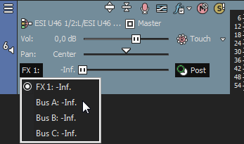Bus sends are pre-volume (and pre-mute) by default. When bus sends are pre-volume, you can create a cue mix that is independent of your main mix (like the monitor out on a hardware mixer).Creating a cue (headphone) mix with the Mixing Console To change to post-volume, click the Pre/Post Volume Send button (or right-click the bus fader and choose Post Volume from the shortcut menu. Post-volume sends are useful for effects sends because the send pays attention to the track's volume and mute controls.