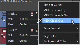 To view the outgoing timecode, right-click the Time Display and choose MIDI Timecode Out from the shortcut menu. The text will now display the outgoing MTC time.