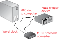 Configure your trigger device to send MIDI timecode (MTC) to your computer.